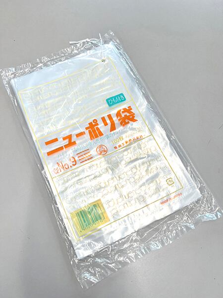 ・食品衛生法適合のポリ袋です。厚みは20μmあり、強度、透明度、開口性に優れています。100枚で紐が付いており、コーナーに切り込みがあるため切り取り易く、切りクズが残りません。外装袋にはバーコードが印刷されており、取り出し口が付いていますので便利です。